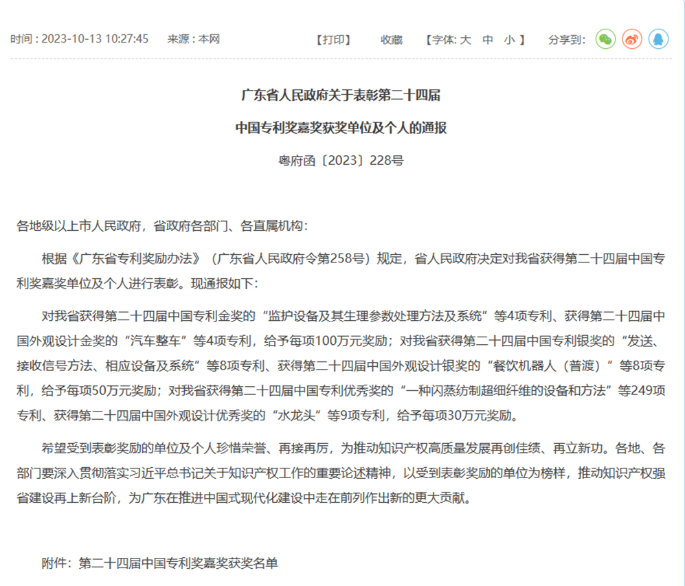 中国专利奖由国家知识产权局与世界知识产权组织联合设立,是含金量最高的知识产权部门奖项,也是国内知识产权界的最高荣誉。自1989年起至今已成功举办二十四届。